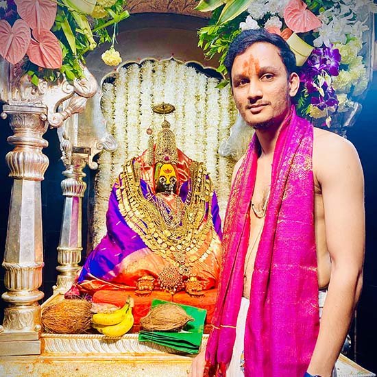 मी श्री उदय किरण कदम , श्री तुळजाभवानी देवीचे मुख्य भोपे पुजारी आहे . तसेच भाविक भक्तांच्या इच्छेनुसार श्री तुळजाभवानी मातेच्या धार्मिक पूजा विधी व सेवा आमच्या मुख्य भोपे पुजारी मार्फत केल्या जातात. भाविक भक्ताना आपली सेवा व उपासना अखंडित राहावी. श्री तुळजाभवानी देवीचे कुलधर्म कुलाचार आपल्यास करता यावे या साठी भक्तांच्या सेवेसाठी या बेसाईट च्या माध्यमातून श्री तुळजाभवानीच्या धार्मिक पूजा विधींची सविस्तर माहिती व इतिहास धार्मिक प्रसार आणि मंदिर मधील सेवा सुविधा व इतर स्वरूपाची माहिती संकलित करून भाविकांच्या सेवेत सादर करत आहोत. तसेच Youtube, Facebook,Instagram यावर देखील आपन श्री तुळजाभवानी देविच्या माहिती संकलित करून भाविकांच्या सेवेत सादर करत आहोत. आई तुळजाभवानीची कृपा आपल्यावर व परिवारातील सर्व सदस्यावर राहो हीच जगदंबे चरणी प्रार्थना ।।